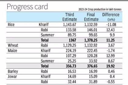 India projects record food production of 332.4 million tons by 2023-24. (भारत का खाद्यान्न उत्पादन 2023-24 में 332.4 मिलियन टन होगा!)